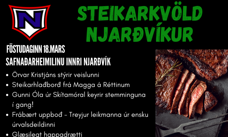 Steikarkvöld Njarðvíkur verður haldið þann 18. mars næstkomandi í safnaðarheimilinu í Innnri Njarðvík. Skráningar eru í fullum gangi á njardvikfc@umfn.is